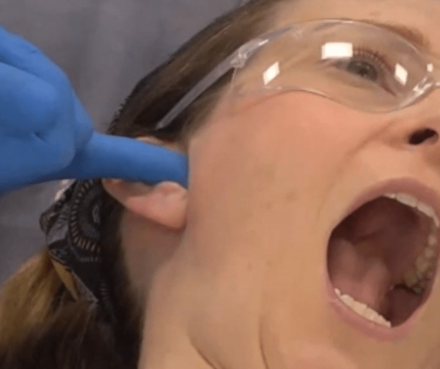 把壓舌板折半後,叫病人咬很大力20秒,要注意,如果病人的molar 有補牙,那顆牙齒就不能被咬