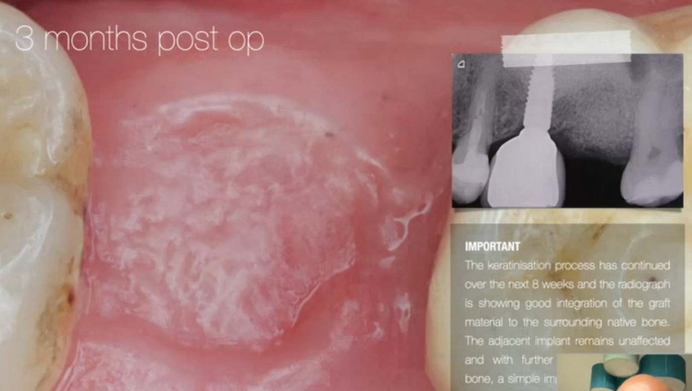 其實是真的還不錯,我覺得GBR的好處除了軟組織不會長進去bone的範圍,更重要的是他可以慢慢爬進去,但對於一個菜機牙醫師,你看人家補骨像補牙一樣,乾,那個membrane 要剪甚麼樣子,多高,縫的方向都是技巧